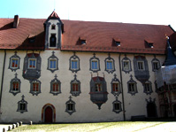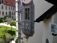 Erker, Fenster, Türme aufgepasst der Schein trügt! Die allermeisten sind nicht echt. Erst der zweite Blick zeigt die Wahrheit. Wir ziehen unsere Hüte vor dieser Illusions-Malerei.